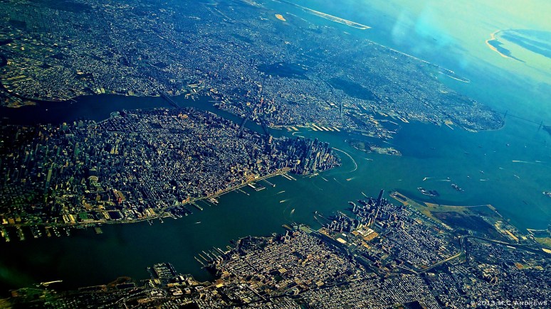 Cruising past New York City, there is a bewildering level of activity. However, from our vantage point at altitude it appears to be one living thing. Life flows down the Hudson past the West side to the Statue of Liberty and Governor’s Island and then up the East River checking its pulse at each bridge along the way.