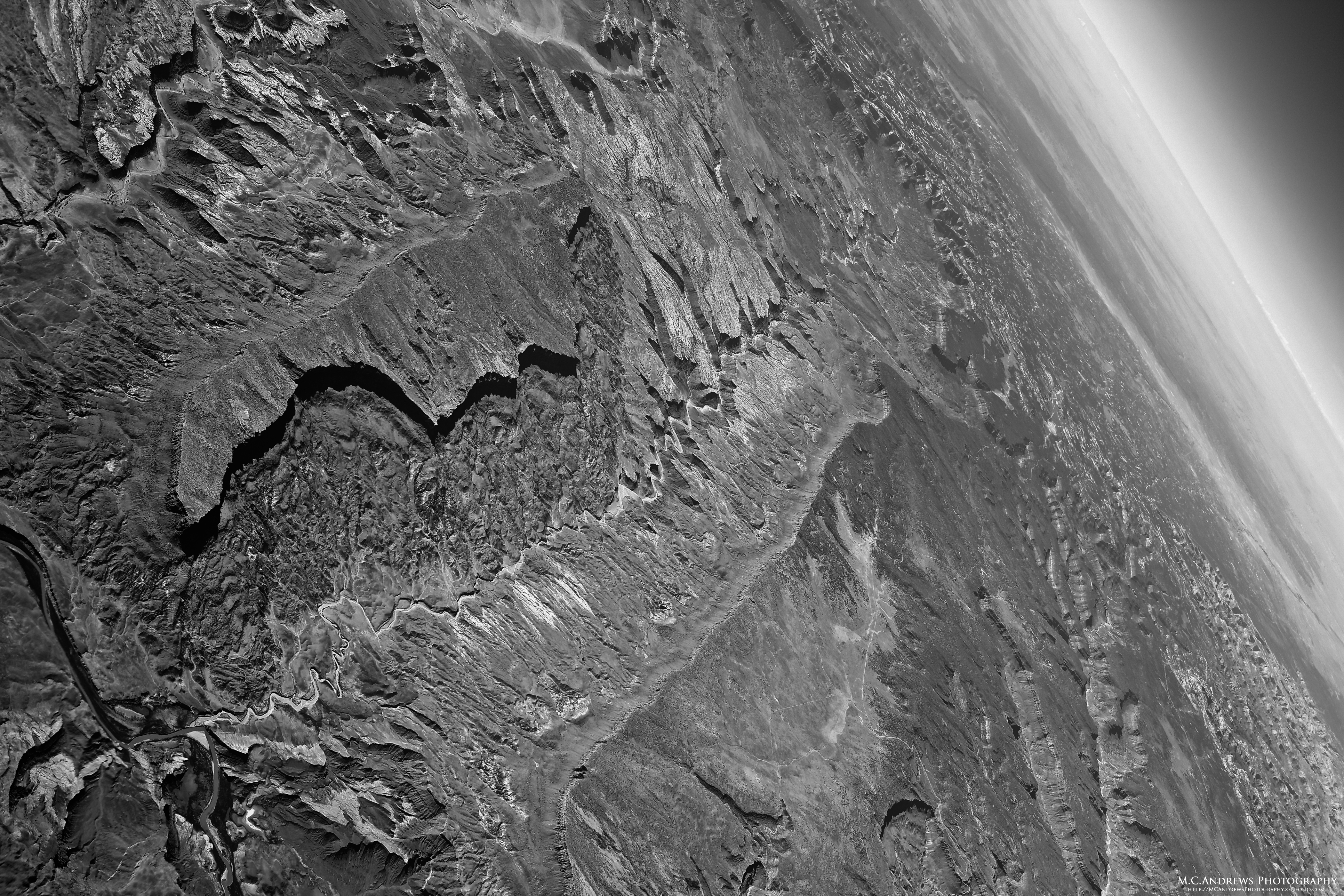 The landscaping of our planet happens in two ways…one way is additive while the other is subtractive…the additive process can be observed daily in the slow but constant violent molten churn of minor volcanoes along the Pacific Rim, but a more subtle and slow subtractive process is at work in the heart of North America. No Man’s Mesa in southern Utah provides us with a glimpse into the process. This great mesa stands out from the high desert with its steep cliff faces and deep shadows providing a sense of its dimension. The San Juan River runs around it to the north and from its path we can imagine the historic flow of water acting on the landscape to trim and erode the face of earth and stone…turning mountains to mesas to buttes to lone pinnacles…patiently carving and crafting…the ultimate epochal stonecutter practicing its art on the irregular plain. Wind and gravity also play their parts, but water is the master of this patient evolution.