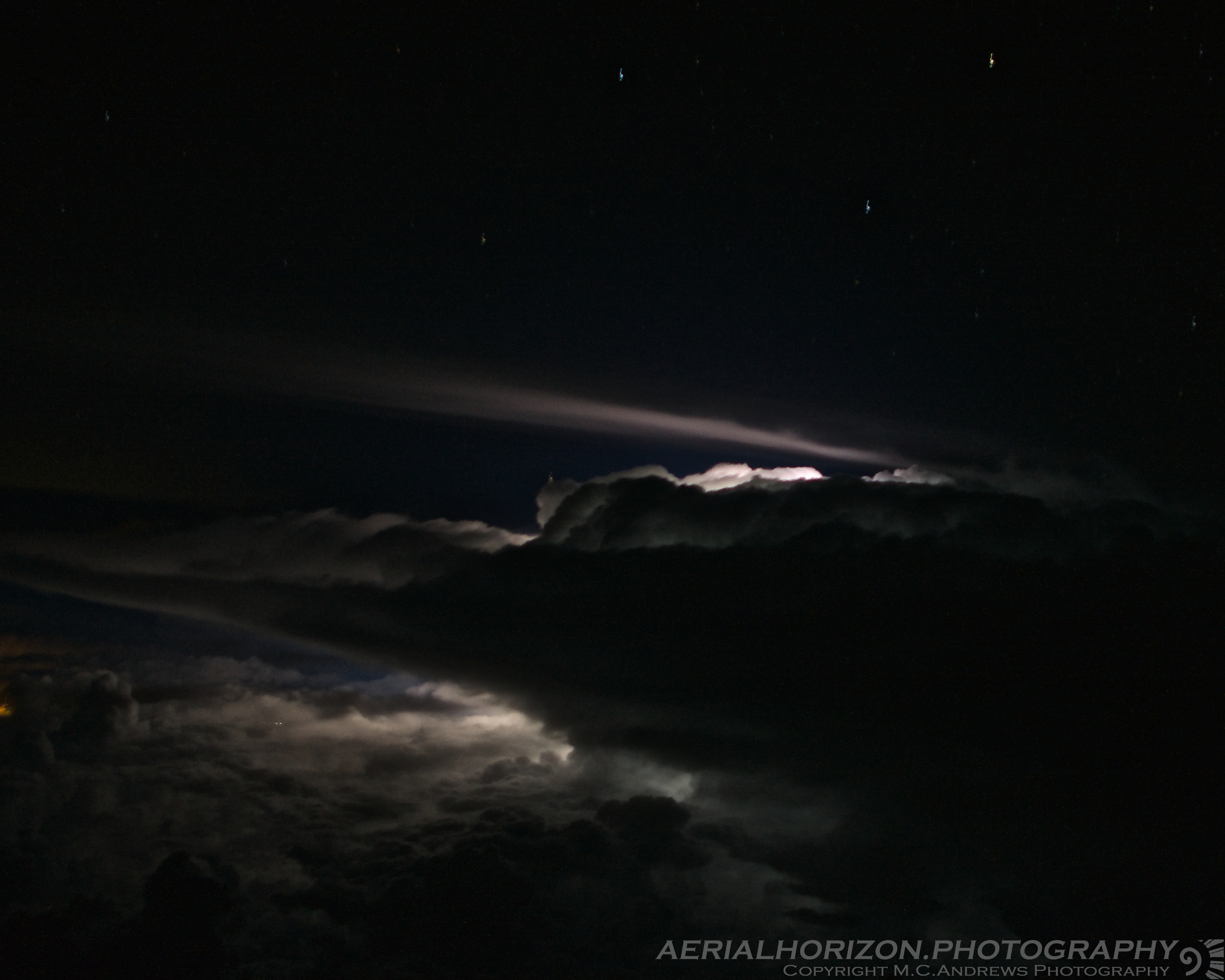 Lightning in a thunderstorm over western New Mexico as it blows out to the west.