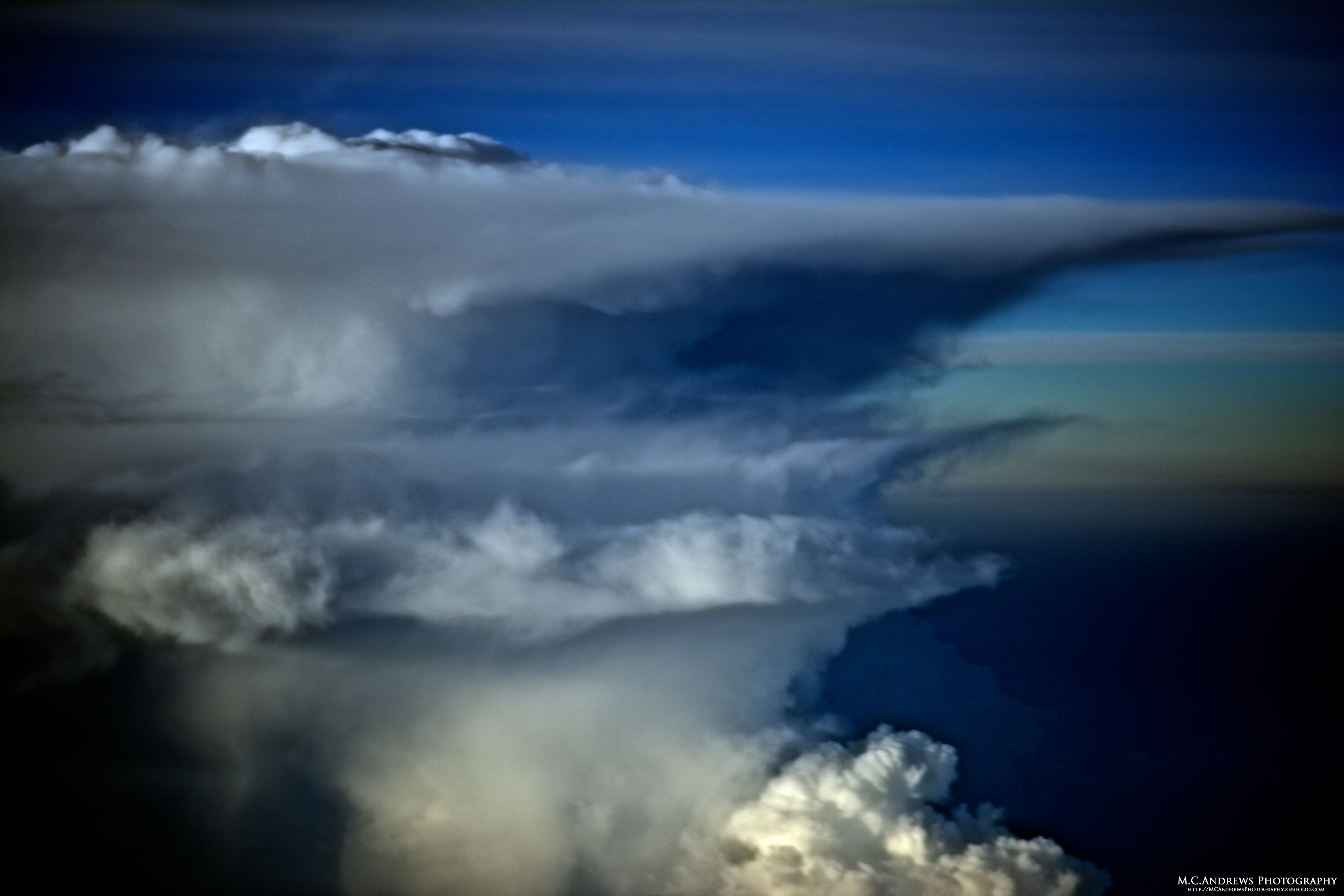 In the Yin and Yang of the evening sky we find a soothing balance…The complementary forces of light and dark become apparent to us as the earth’s shadow curls around our edge of the horizon…and a late thunderstorm rises through the shadows into the light. In the dark shadows of its thickest points, we see the same balance of light and dark contained within a single storm…projecting above the horizon, it introduces an element of chaos into the predictable order of twilight. Yet with all of this energy, the evening is still calm…light and dark…night and day…chaos and order…perfectly balanced.