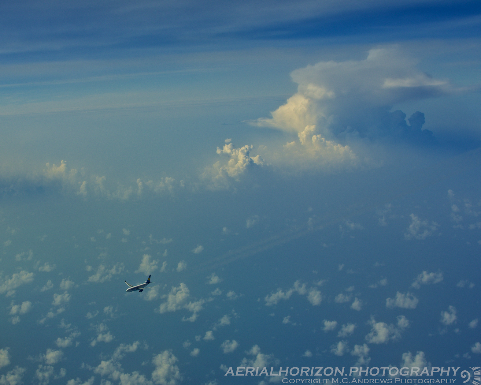 The airways are very ordered, the flight plans are clearly defined, and the atmosphere is a dynamic environment that calls upon pilots to frequently make decisions to ensure the continued safety of the traveling public. The pilot of this Thomas Cook Airbus prudently chose to deviate from his flight planned route to avoid the thunderstorm at his 5 o’clock. Air traffic controllers do an admirable job deconflicting the diverting aircraft’s flight paths and readily providing warnings of weather intensity along the way…but there is no substitute for keeping one’s eyes on the horizon to avoid hazardous weather.
