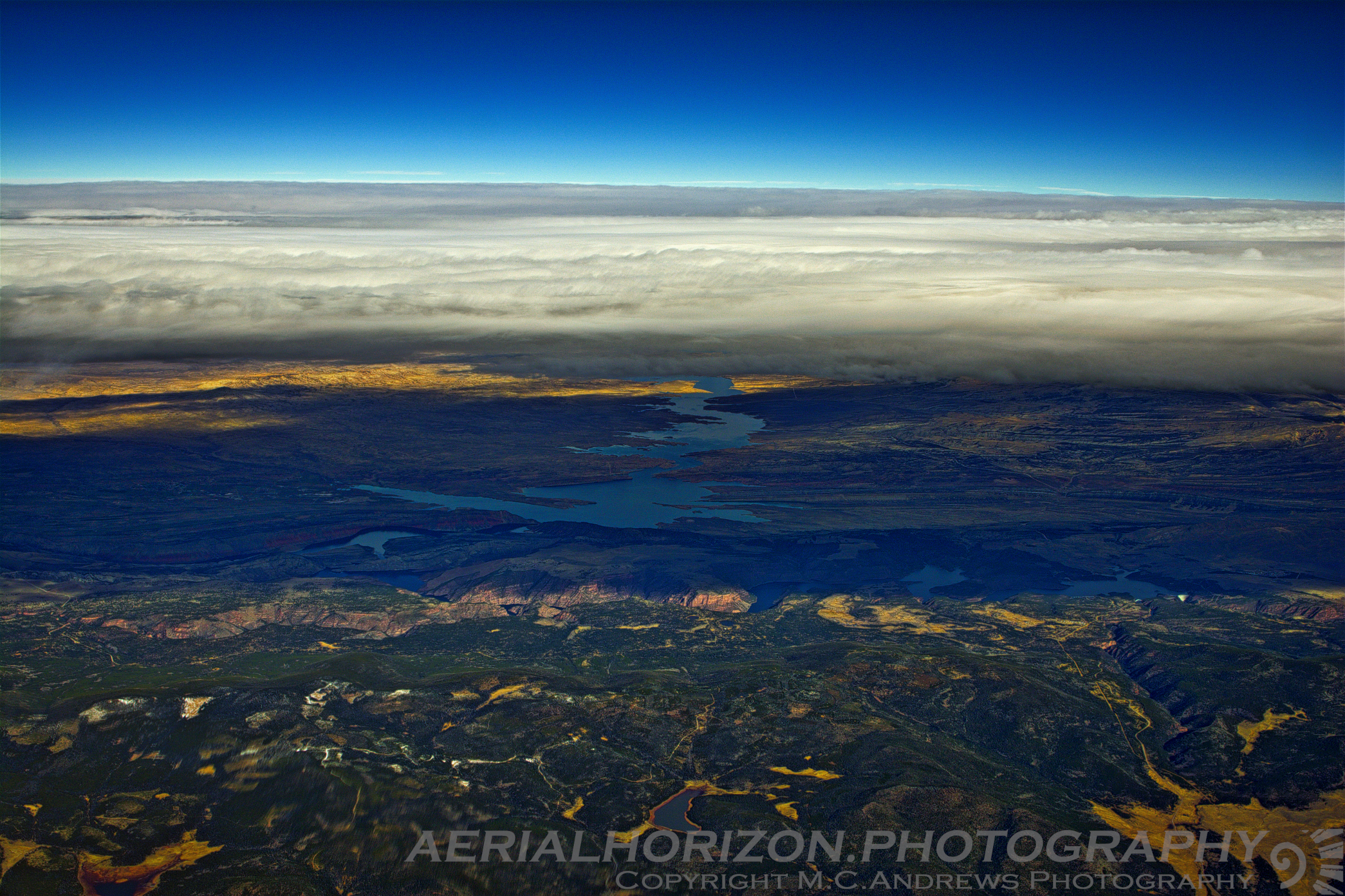 Paralleling the course of the Green River as we hemstitch the border between Utah and Wyoming, an undercast moves in, casting shadows across the Flaming Gorge reservoir…the combination of cloud and shadow creates a layered effect that divides the landscape into green, blue, white, and ochre swaths of color and light.