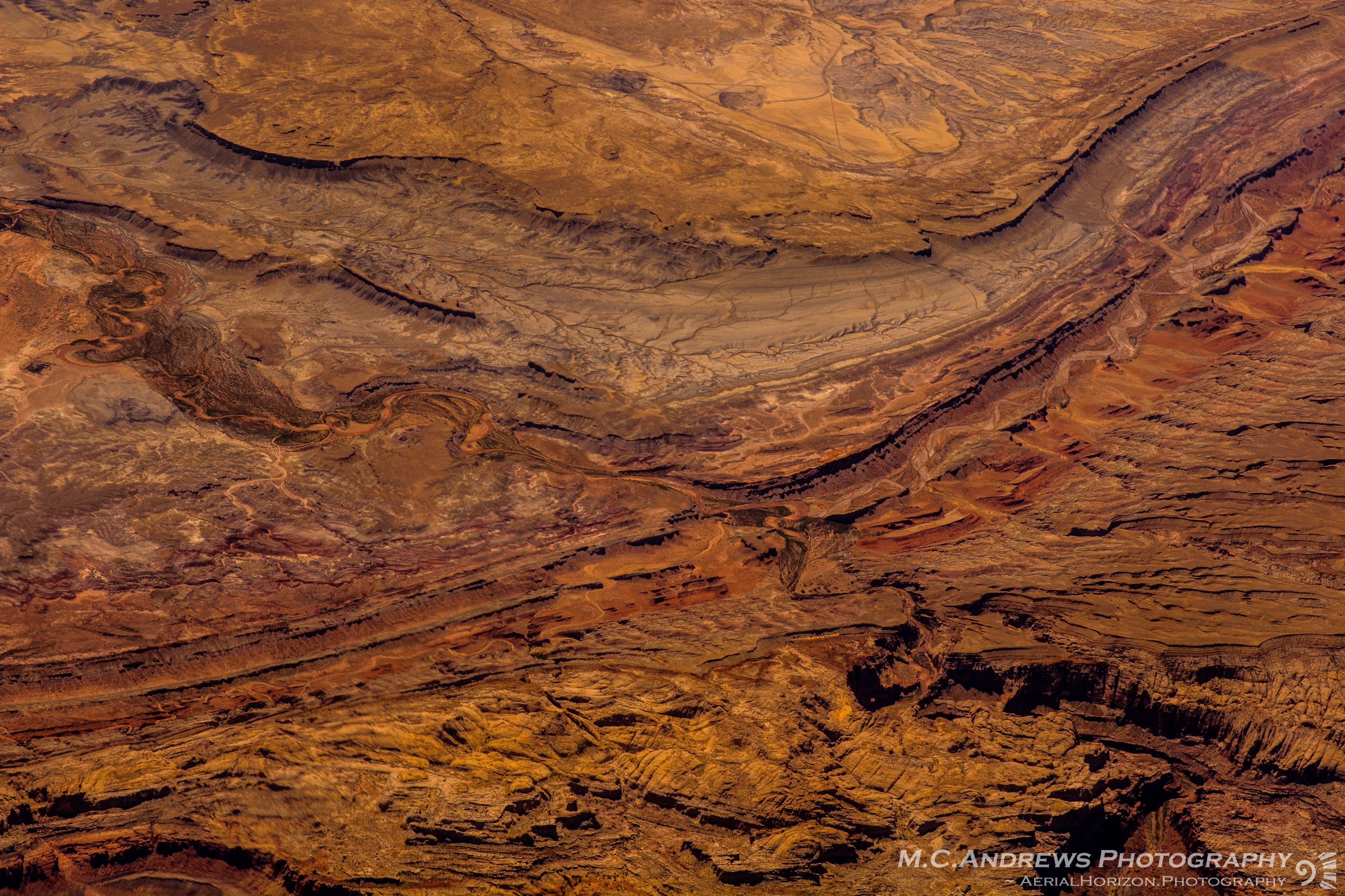 Looking southward along the San Rafael Swell, irregular forms rise out of the waves of earth as they advance through the Gobin Desert. The disrupted motion creates the sense of fluid rippling in shallow disjointed waves as it runs over an immovable field of stone in its path downstream.